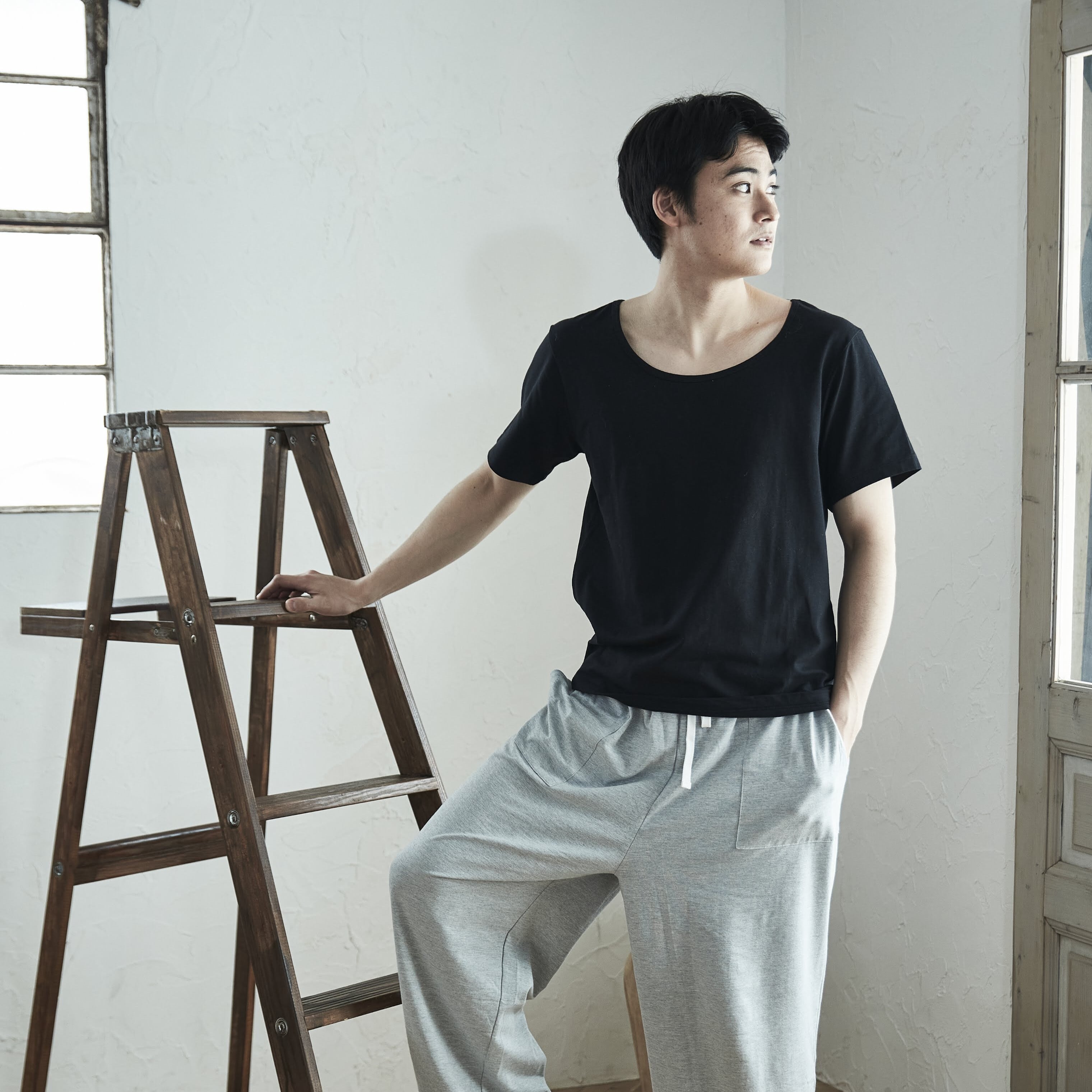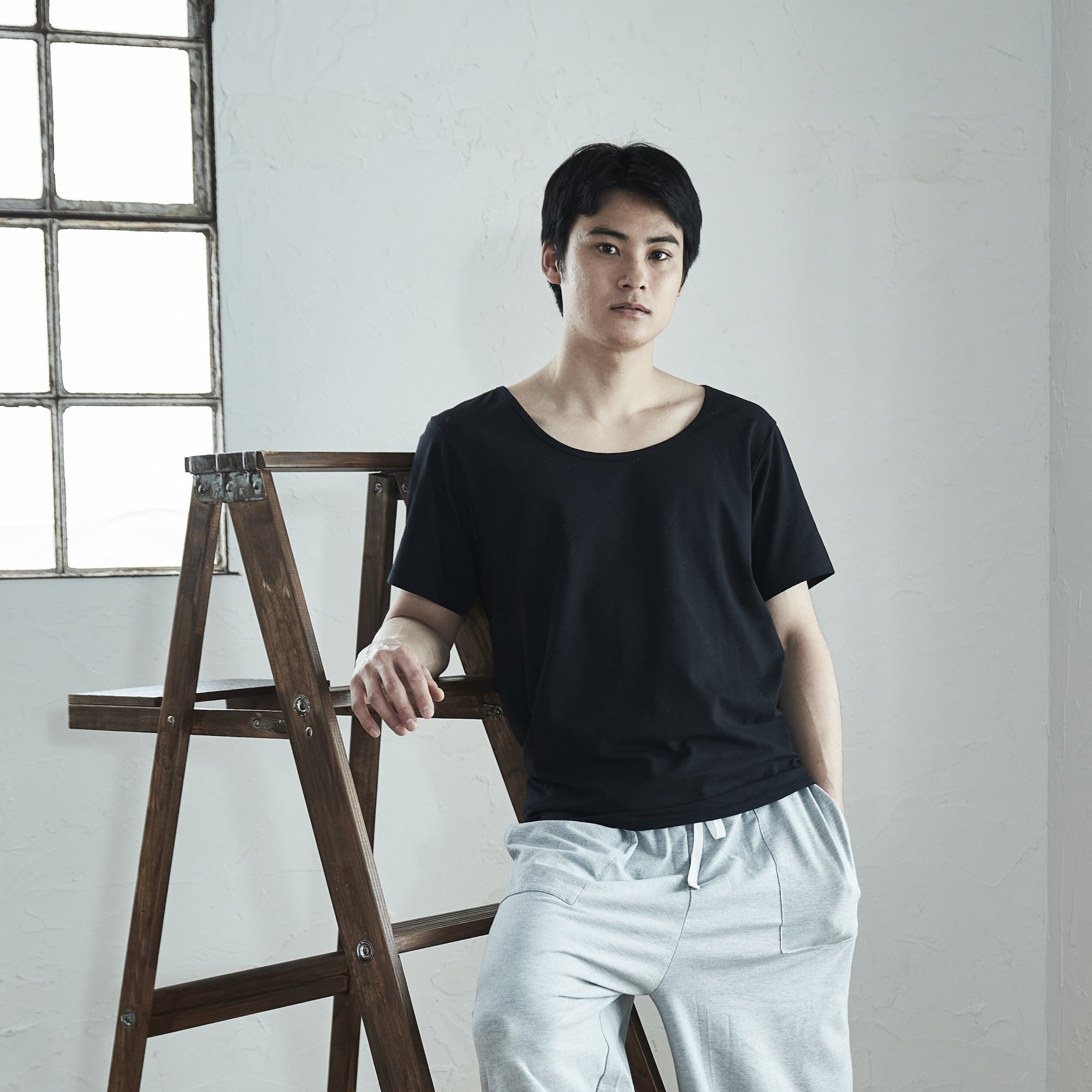 深めの襟ぐりデザインで、下着として使用しても、首元が上着からはみ出すことはありません。